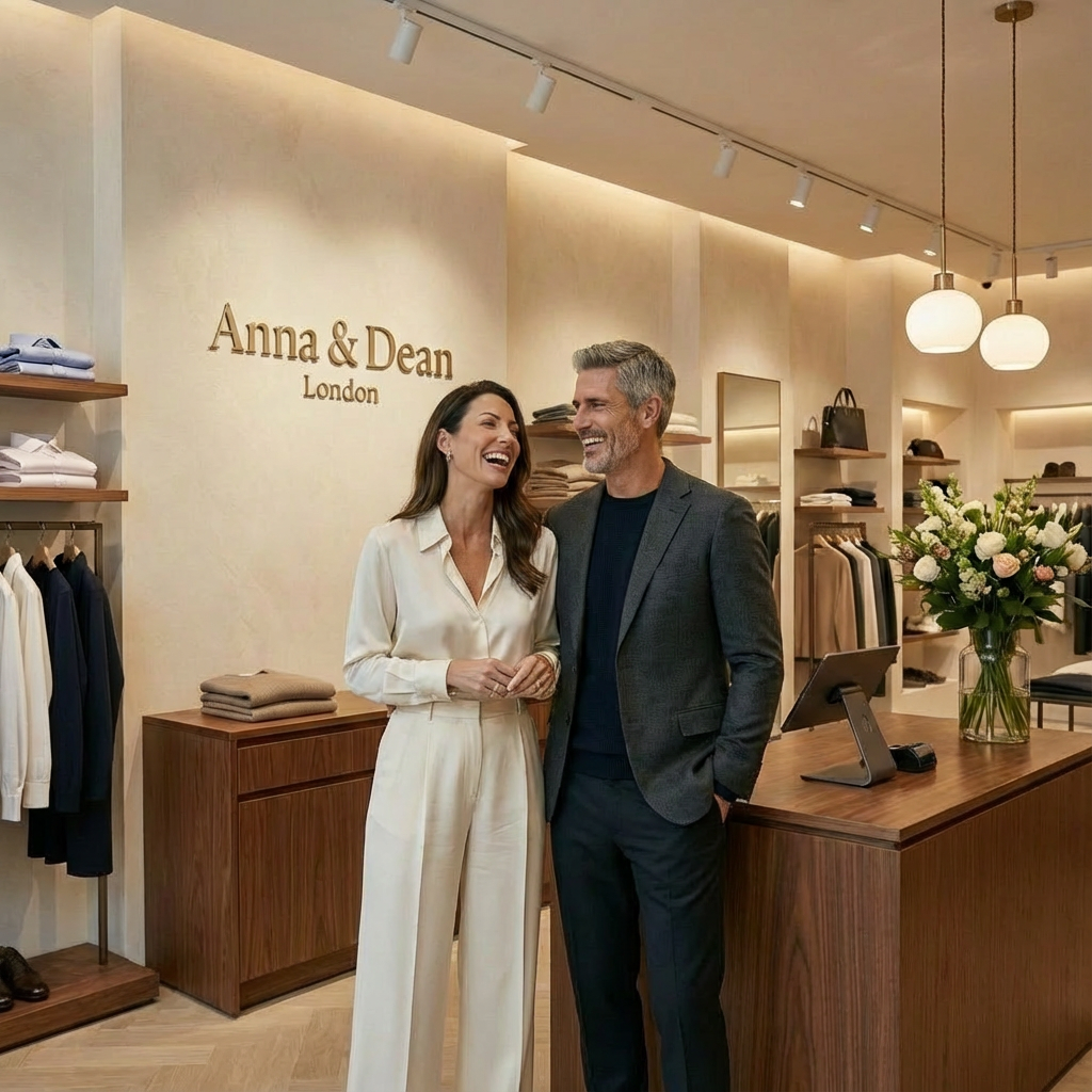 Today, Anna & Dean London stands for modern classics with character, subtle trends beyond seasons and a warm in store experience where every customer feels seen. After more than two decades in fashion, Anna and Dean continue doing what they love most, helping people dress in a way that feels truly their own.