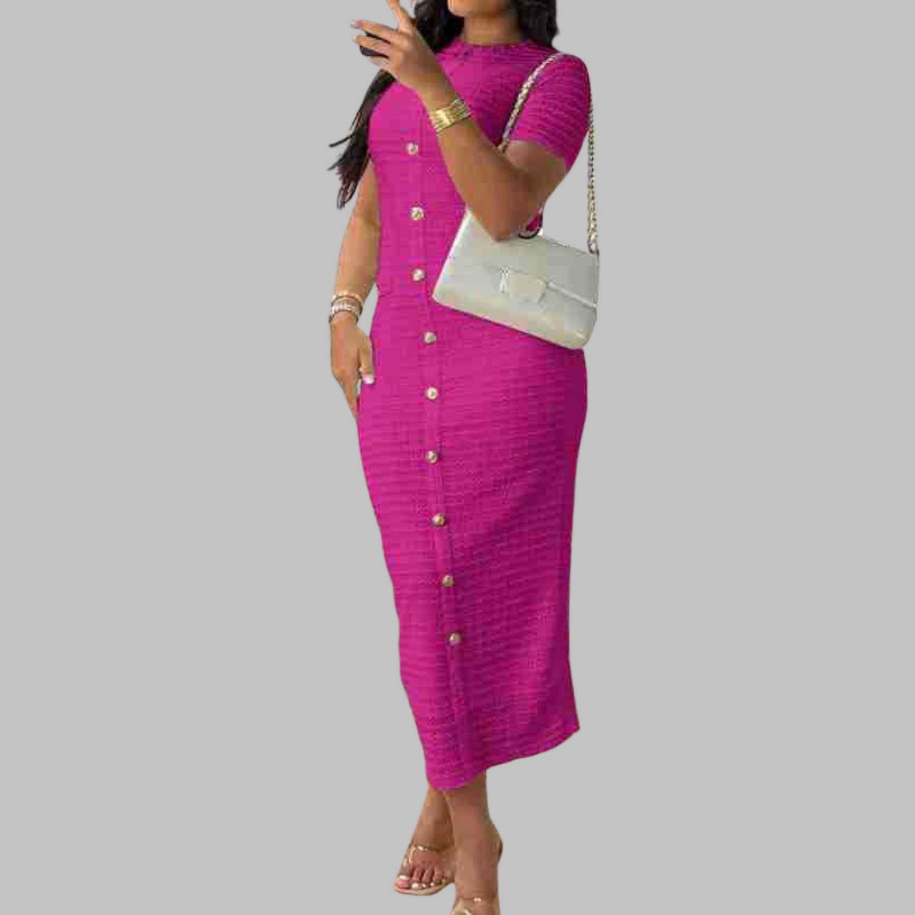 RACHEL™ - Elegant Round Neck Fake Button Dress
